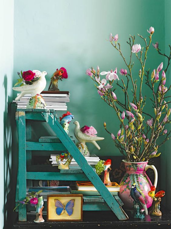 Muitas peças pintadas à mão, pátina, aproveitamento de material, bambu, papel de parede enfindos!